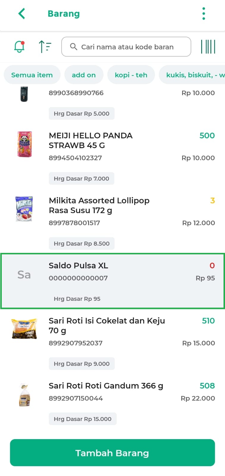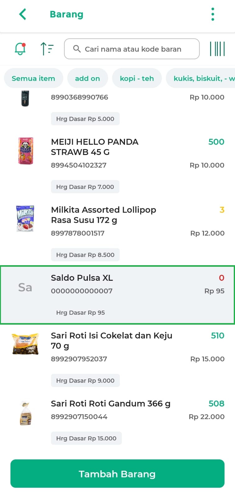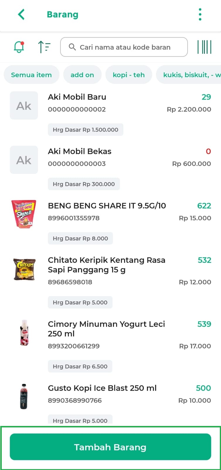 - Klik tombol Tambah Barang untuk menambahkan data produk baru
