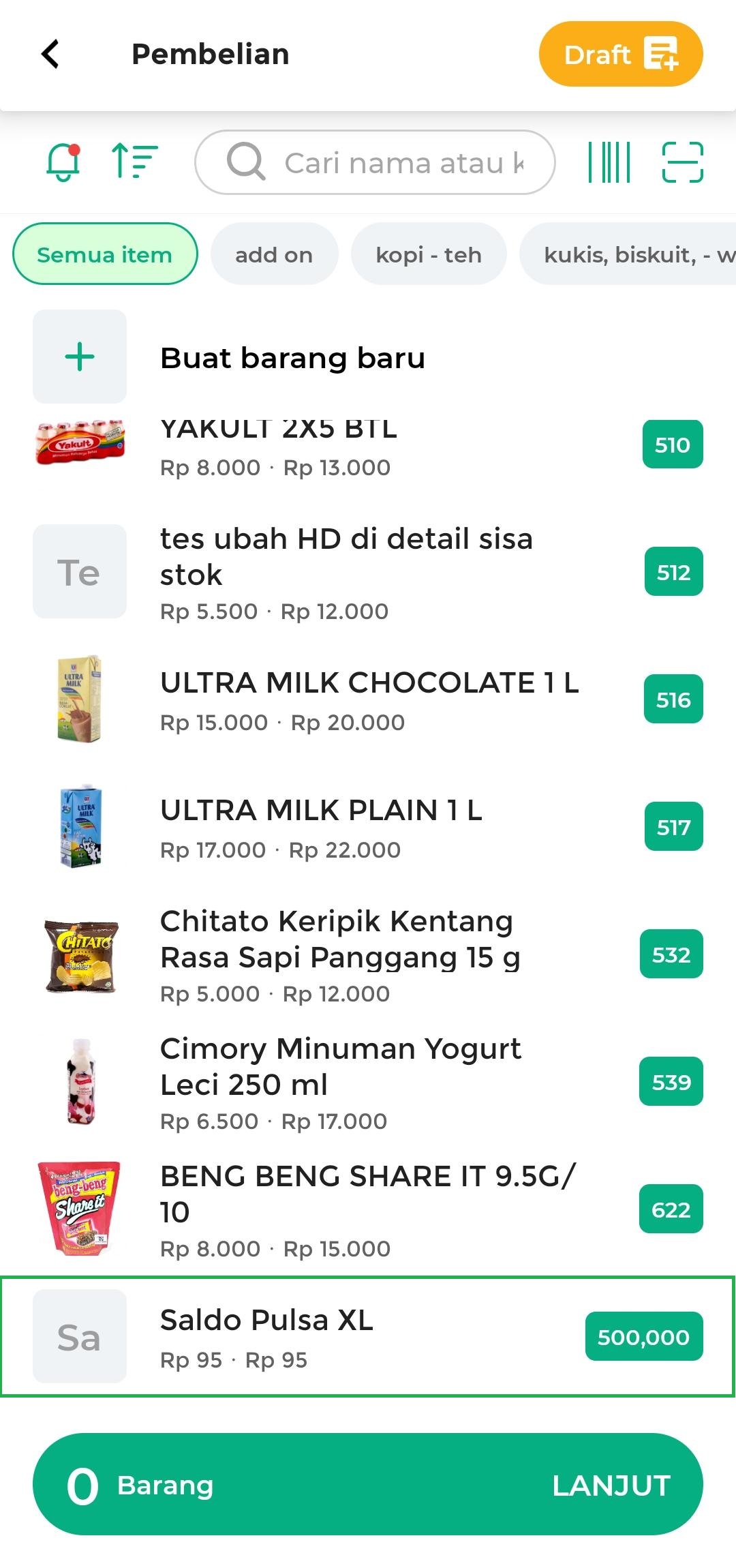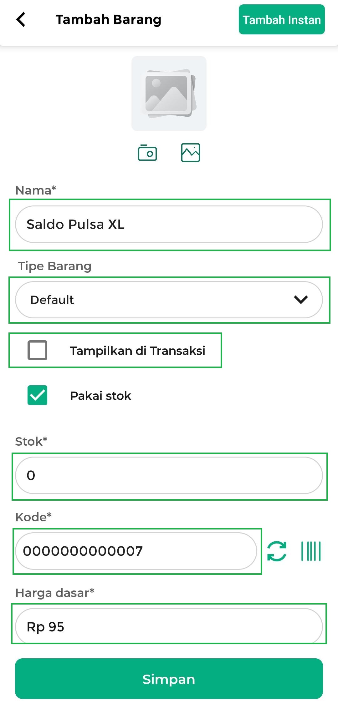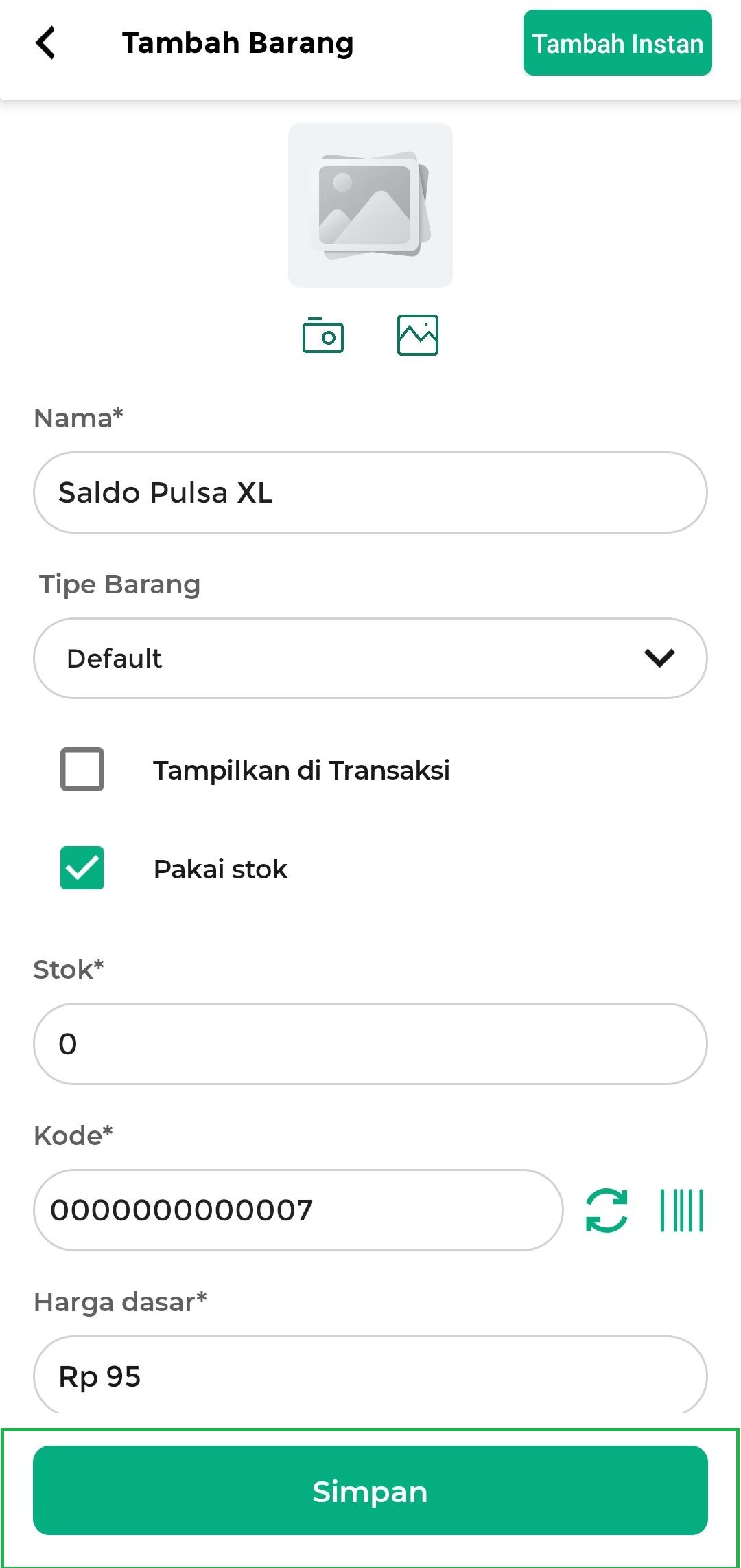 - Masukkan stok dengan angka 0, karena pada tahap ini Anda belum melakukan pembelian saldo pulsa ke supplier