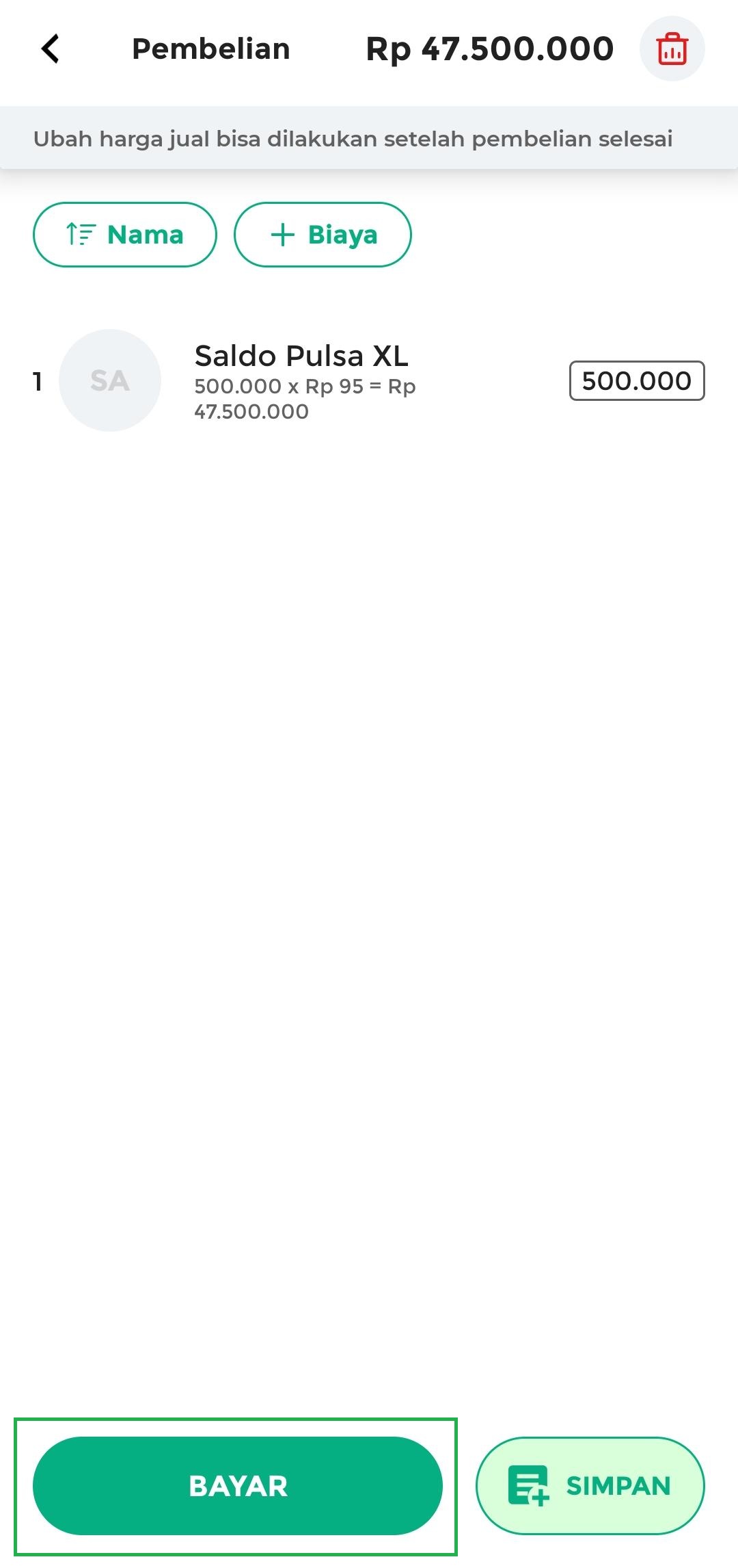 Kami merekomendasikan untuk menggunakan Harga Dasar yang ditentukan oleh sistem. Di samping itu, Anda dapat menentukan Harga Jual sesuai dengan harga yang akan Anda tawarkan kepada pelanggan. Setelah itu, klik tombol Simpan.