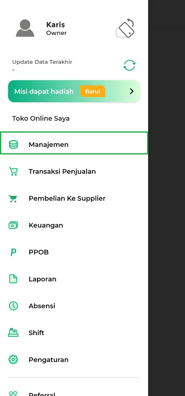 - Pilih menu Manajemen