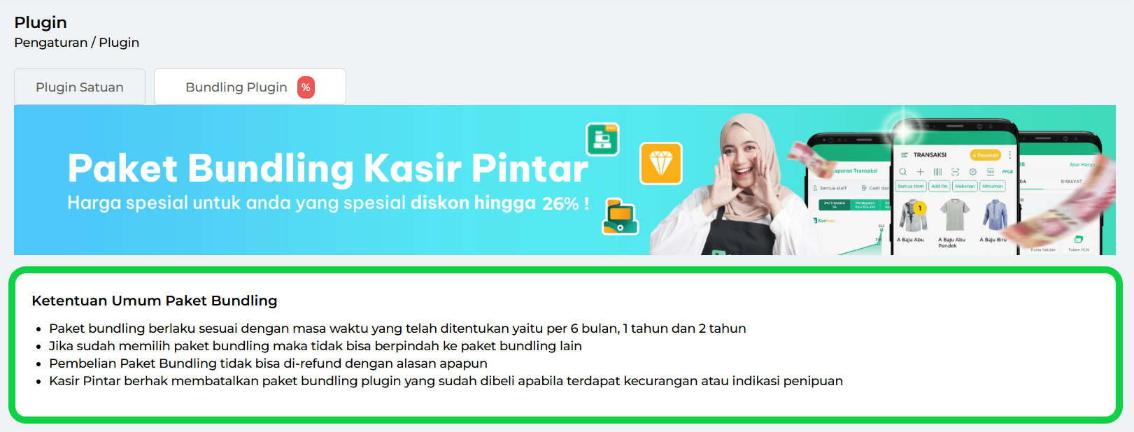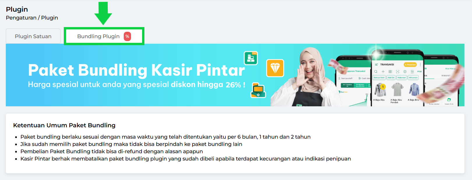 3. Pilih tab Bundling Plugin untuk berlangganan paket bundling plugin Kasir Pintar.