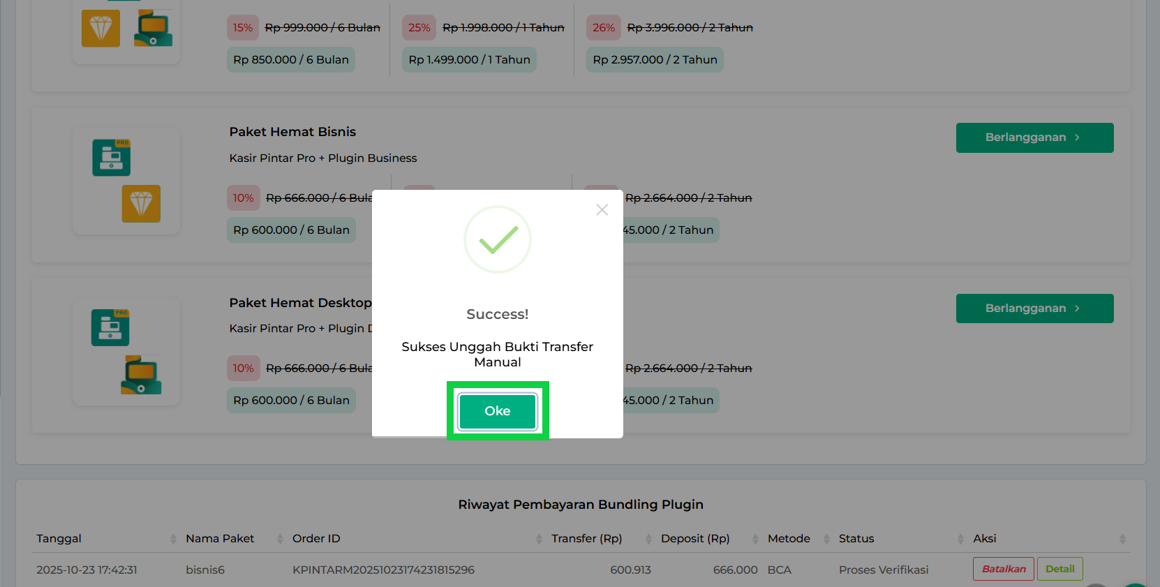 Sekarang, Anda sudah berhasil berlangganan Paket Bundling Plugin di Kasir Pintar. Nikmati berbagai plugin unggulan dengan harga lebih hemat dan pengelolaan bisnis yang makin efisien.