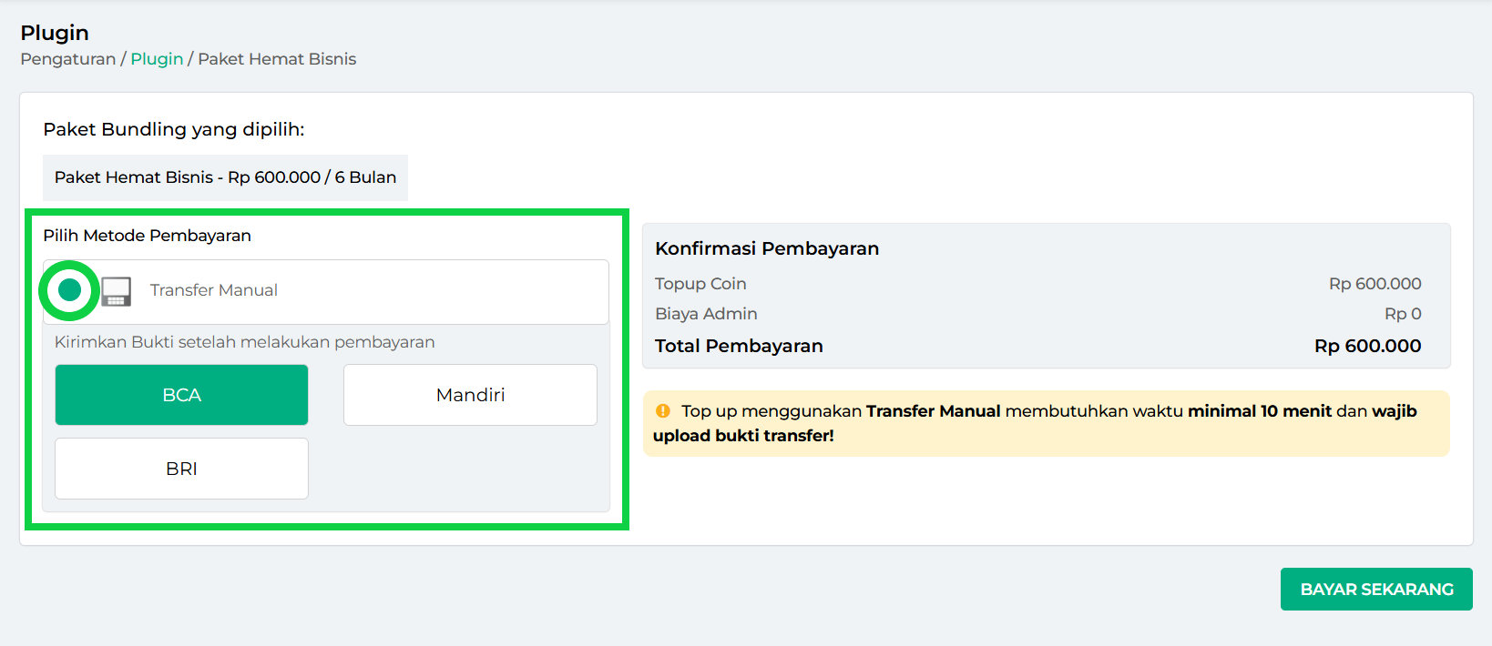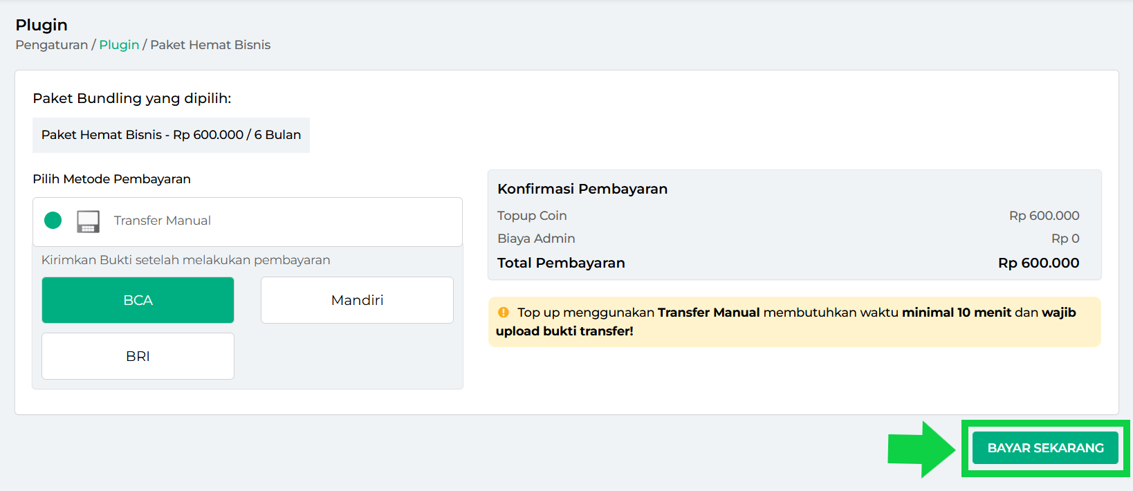 10. Setelah memilih metode pembayaran, klik Bayar Sekarang.