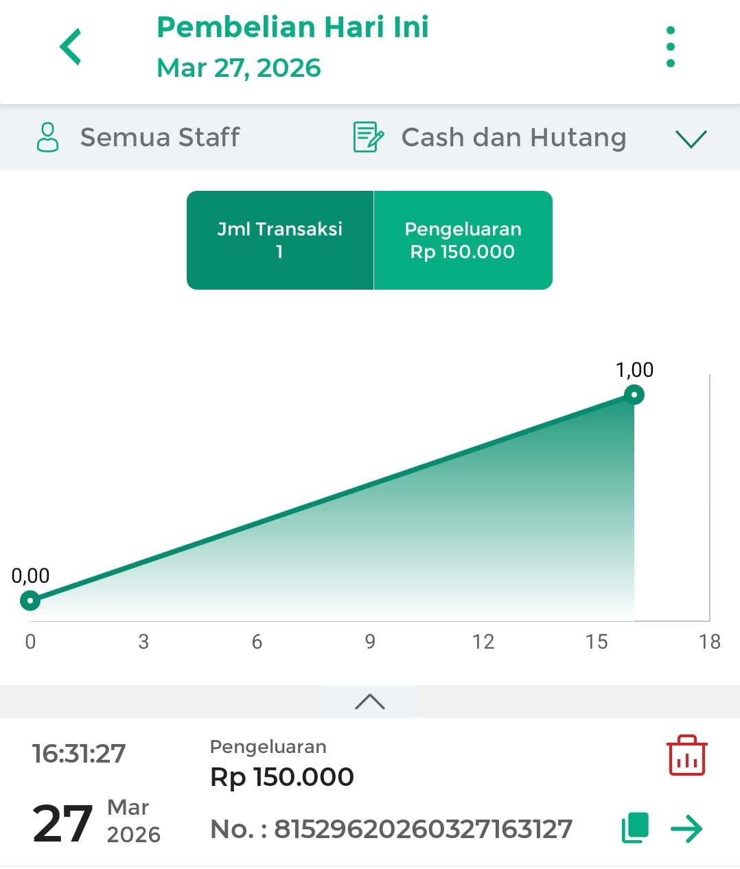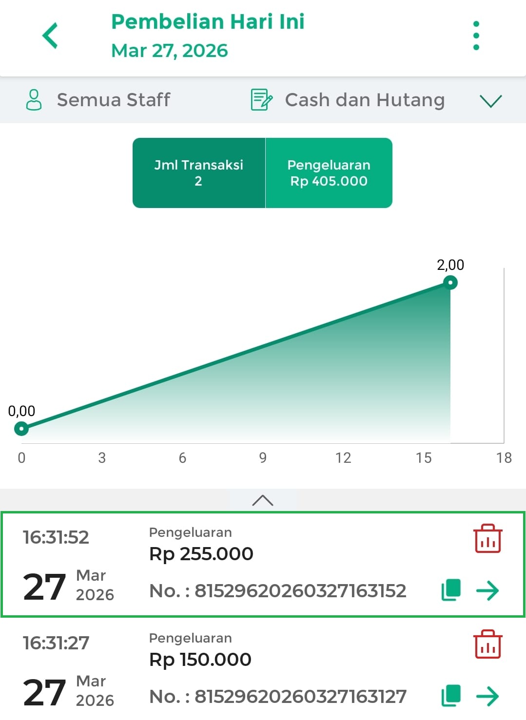 - Pilih transaksi yang akan dihapus, lalu tap ikon hapus yang ditandai dengan gambar keranjang sampah seperti berikut.