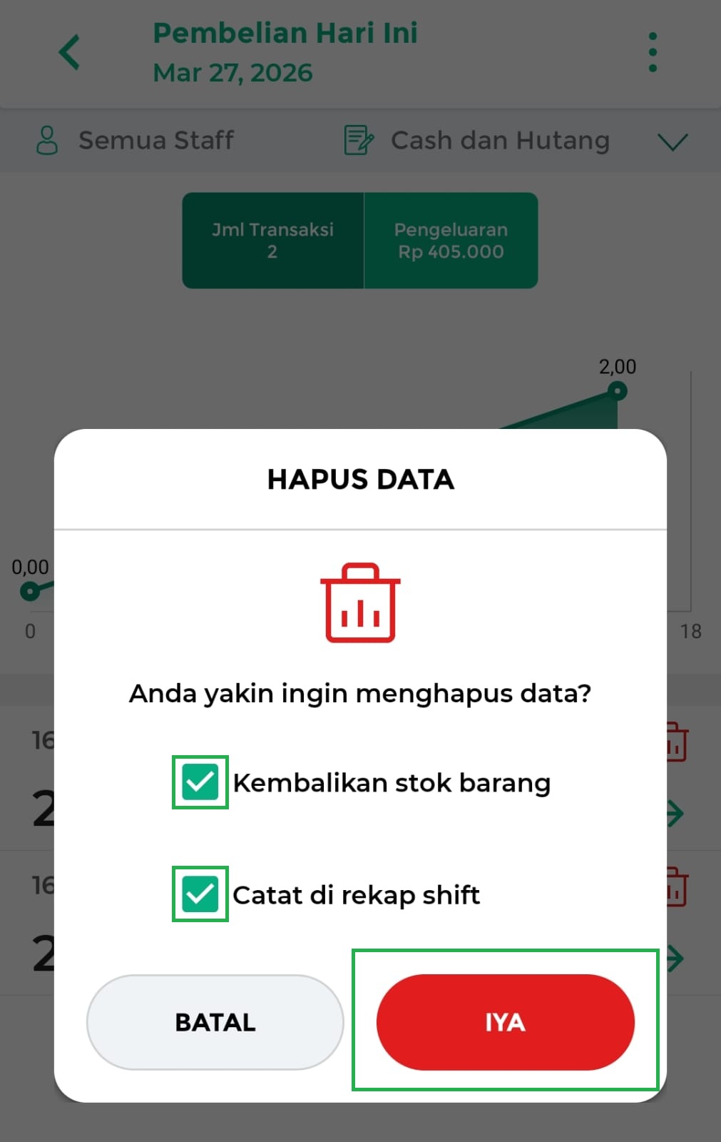 - Terdapat 2 pilihan mode hapus transaksi yang dapat Anda lakukan: