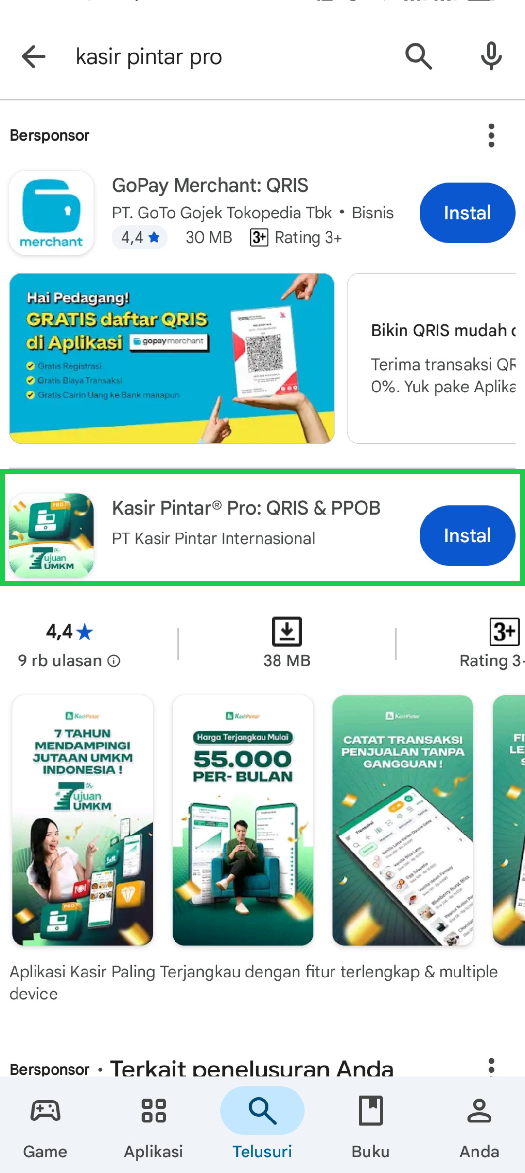 - Masukkan keyword “Kasir Pintar Pro” pada kolom pencarian