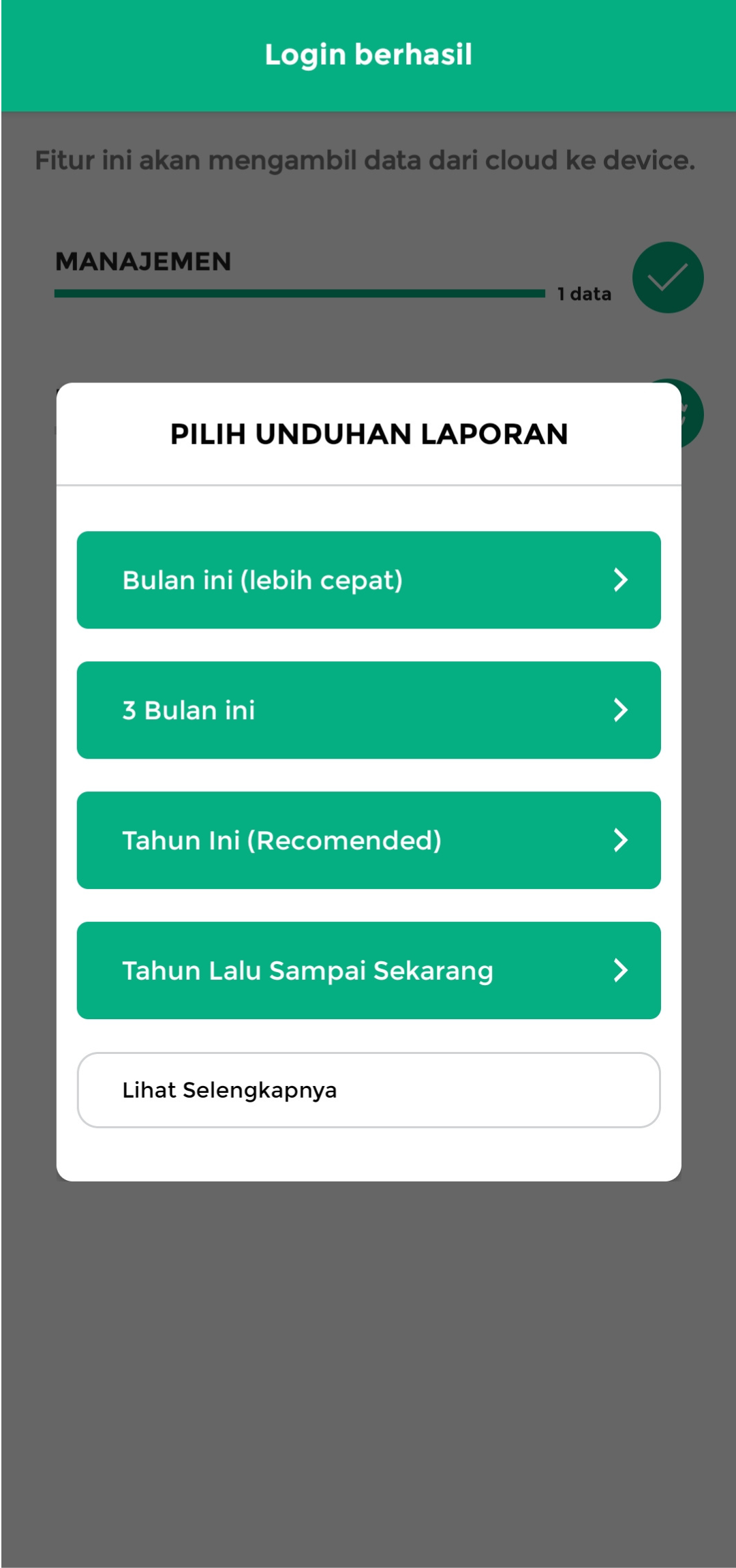 Anda dapat memilih jenis atau periode data yang ingin disinkronkan sesuai dengan kebutuhan.