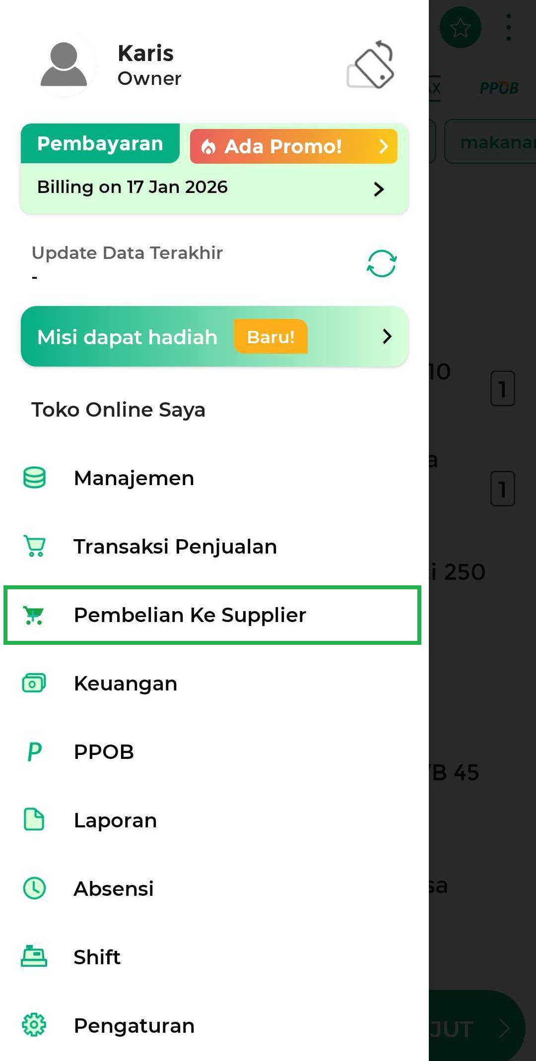 - Cara Melakukan Pembelian ke Supplier (Kasir Pintar Dashboard)
