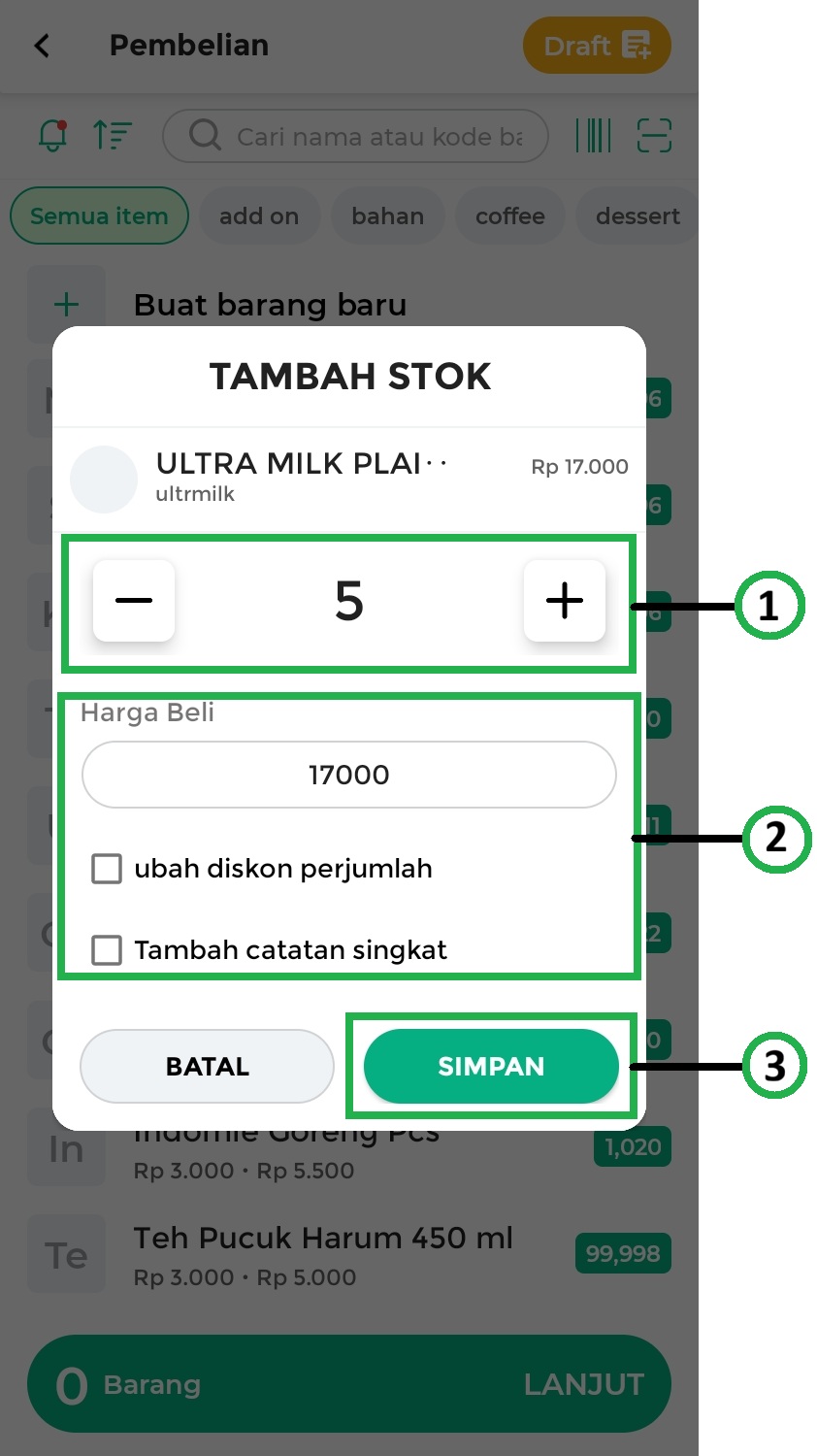 - Langkah ke 2 : Atur Harga Beli, Diskon, dan Catatan