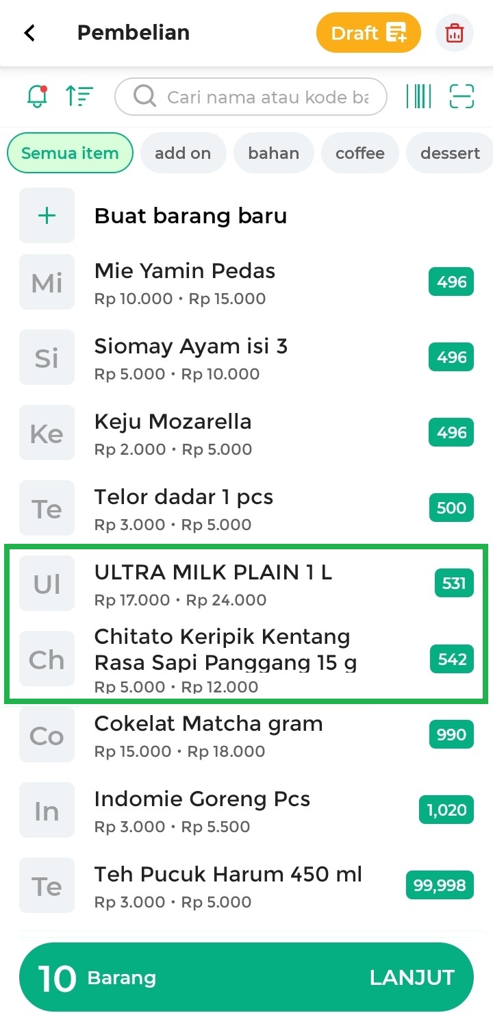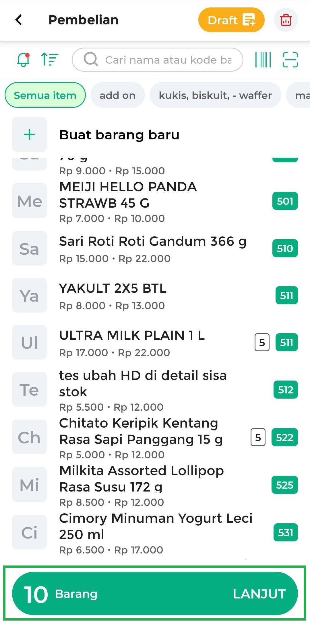 Berikut adalah langkah-langkah mencatat transaksi pembelian barang di aplikasi Kasir Pintar Pro :