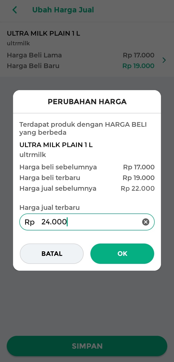 - Klik Simpan untuk menyimpan perubahan harga jual yang telah disesuaikan.