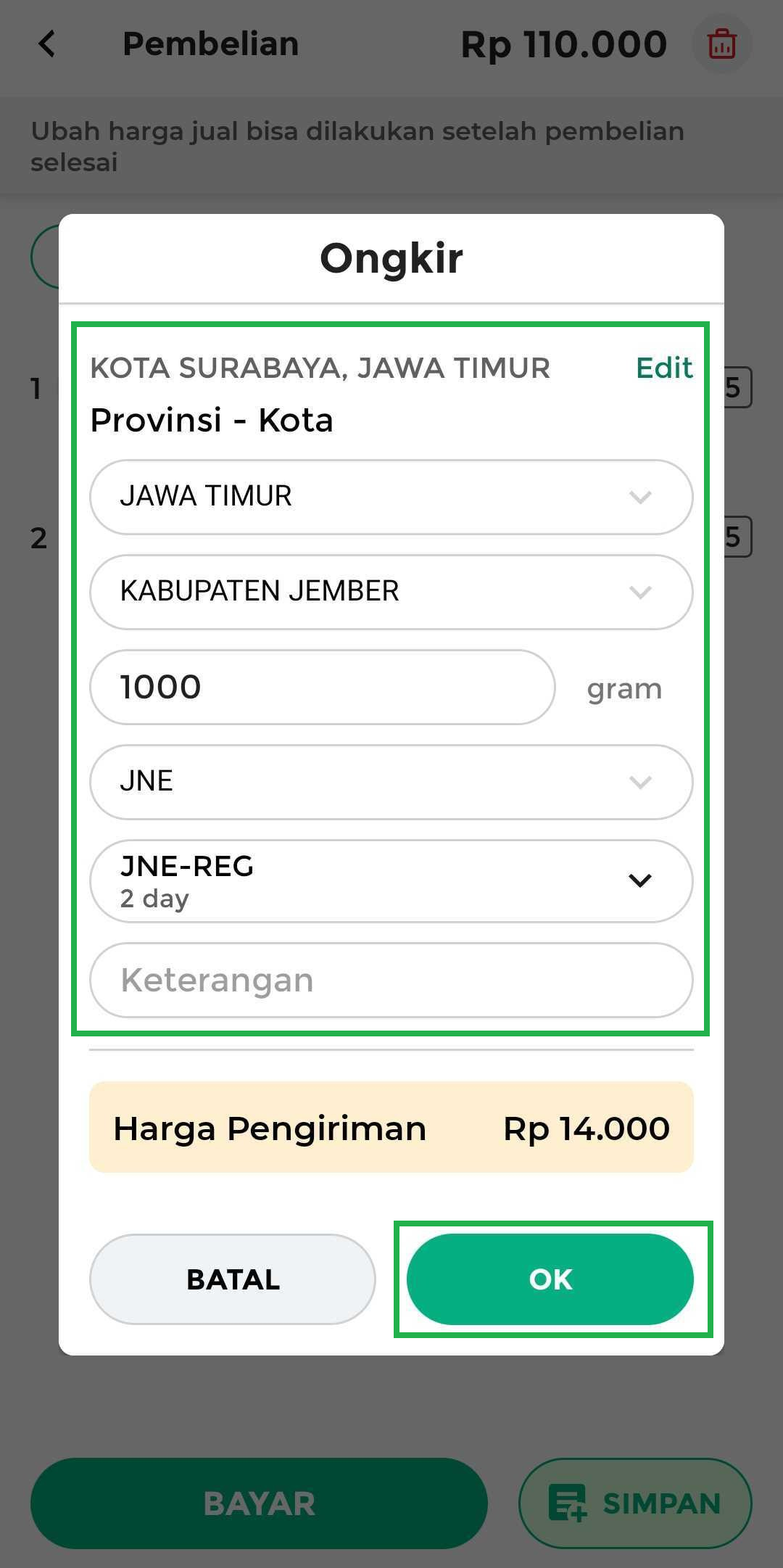Lengkapi semua data pengiriman sesuai kebutuhan, lalu klik OK.
