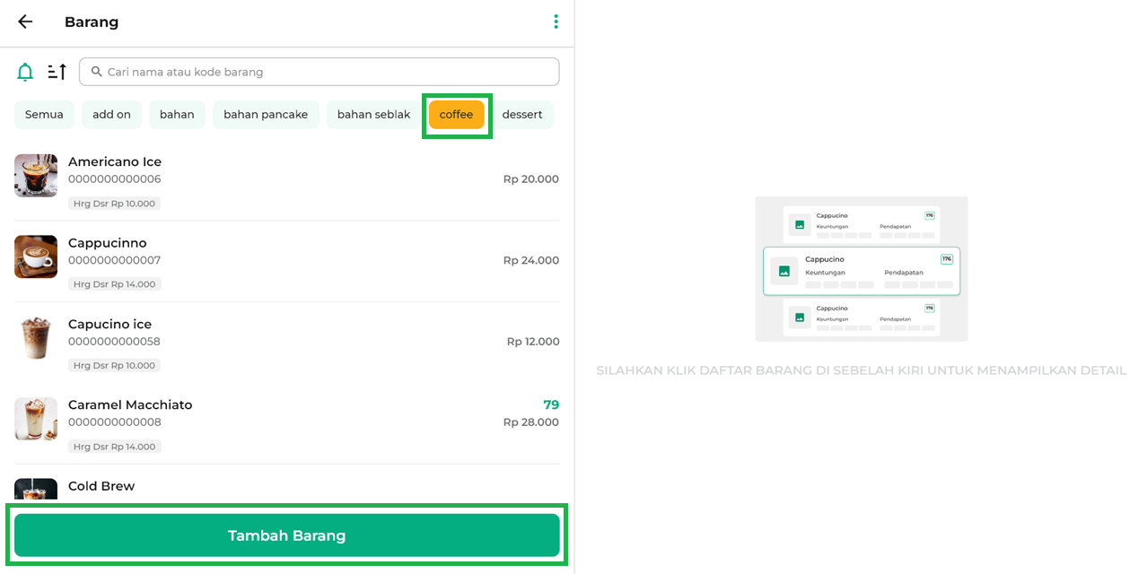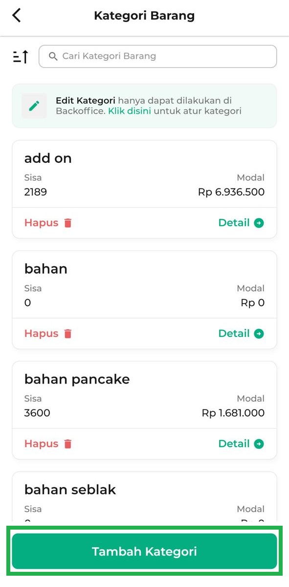 Selain itu, Anda dapat menambahkan barang baru dengan memilih salah satu kategori, lalu klik tombol Tambah Barang. Baca artikel selengkapnya di sini.