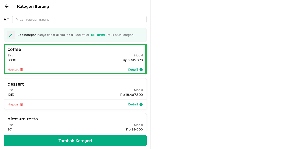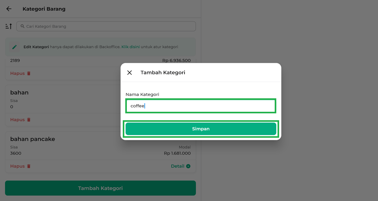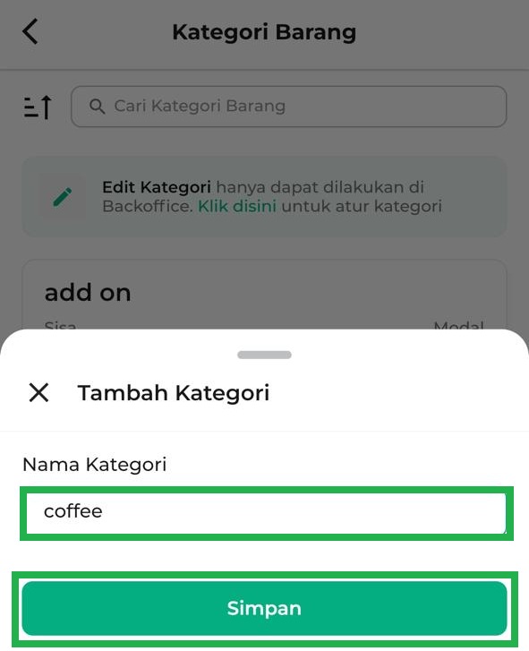 Contoh: Karis ingin menambahkan kategori baru bernama coffee.