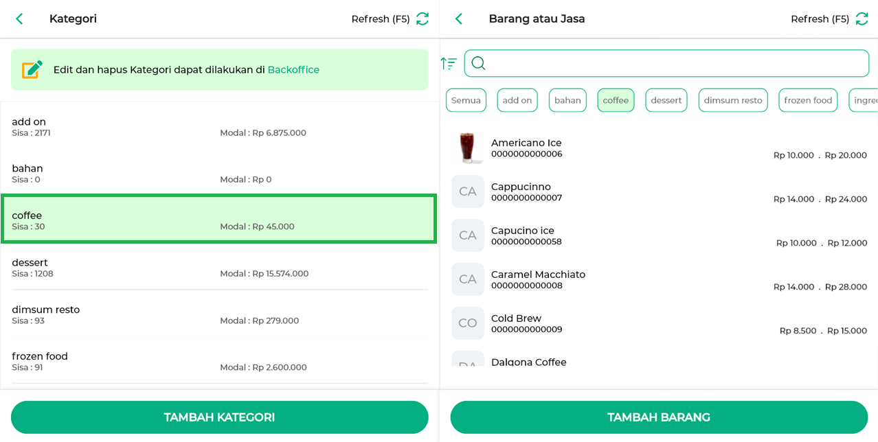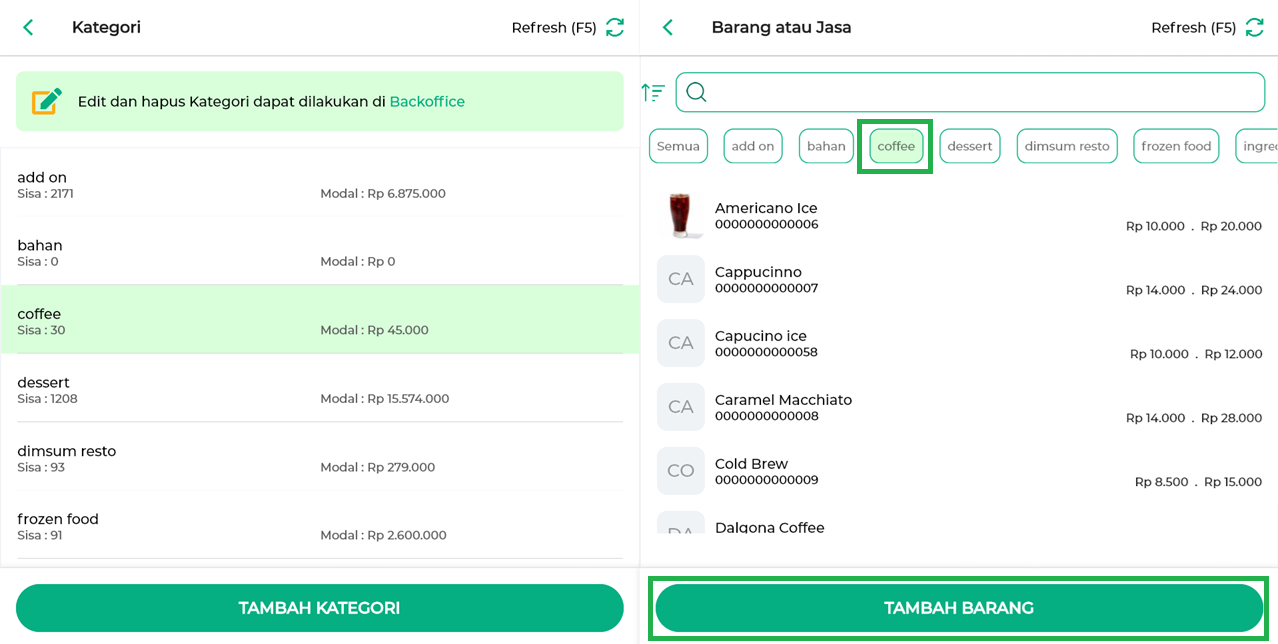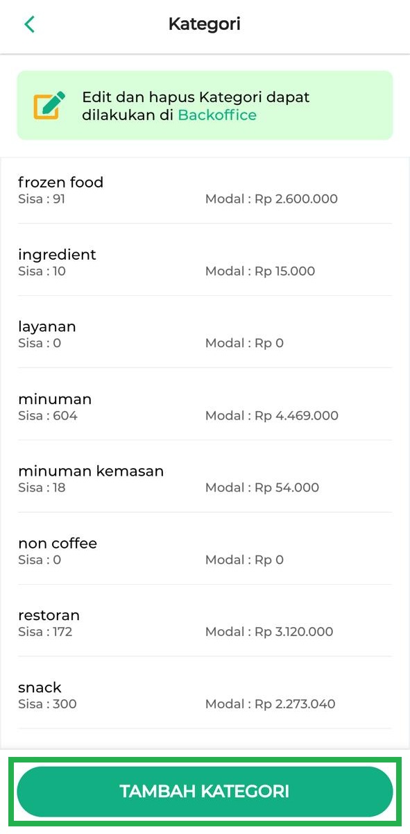 Selain itu, Anda dapat menambahkan barang baru dengan memilih salah satu kategori, lalu klik tombol Tambah Barang. Baca artikel selengkapnya di sini.