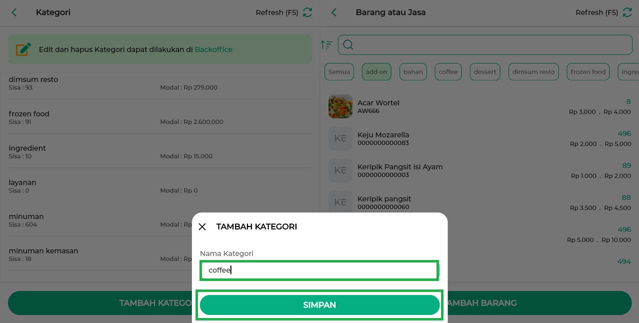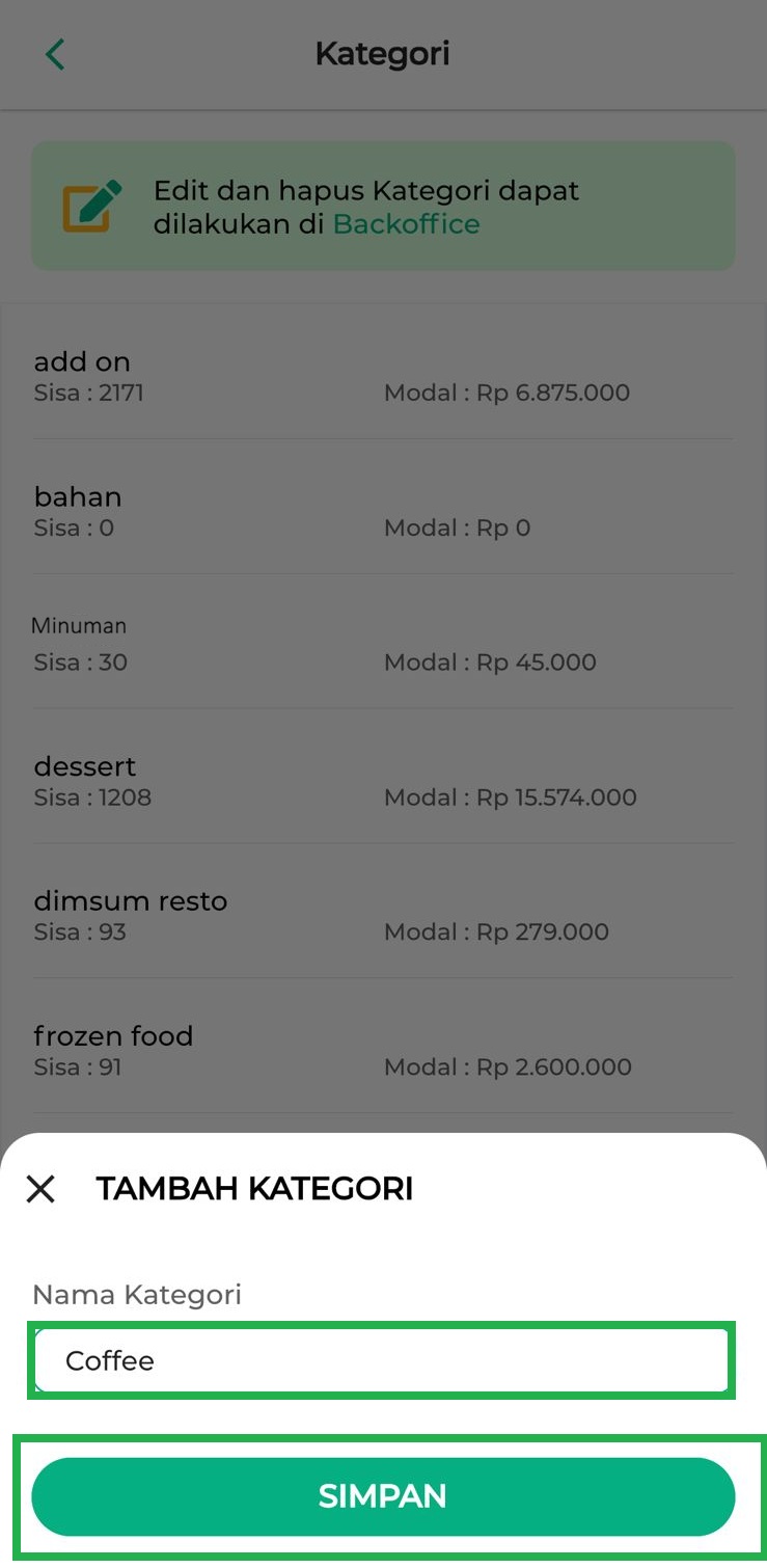 Contoh: Karis ingin menambahkan kategori baru bernama coffee.