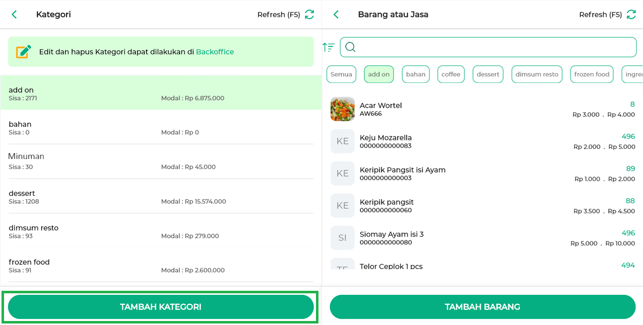Selain itu, Anda dapat menambahkan barang baru dengan memilih salah satu kategori, lalu klik tombol Tambah Barang. Baca artikel selengkapnya disini.