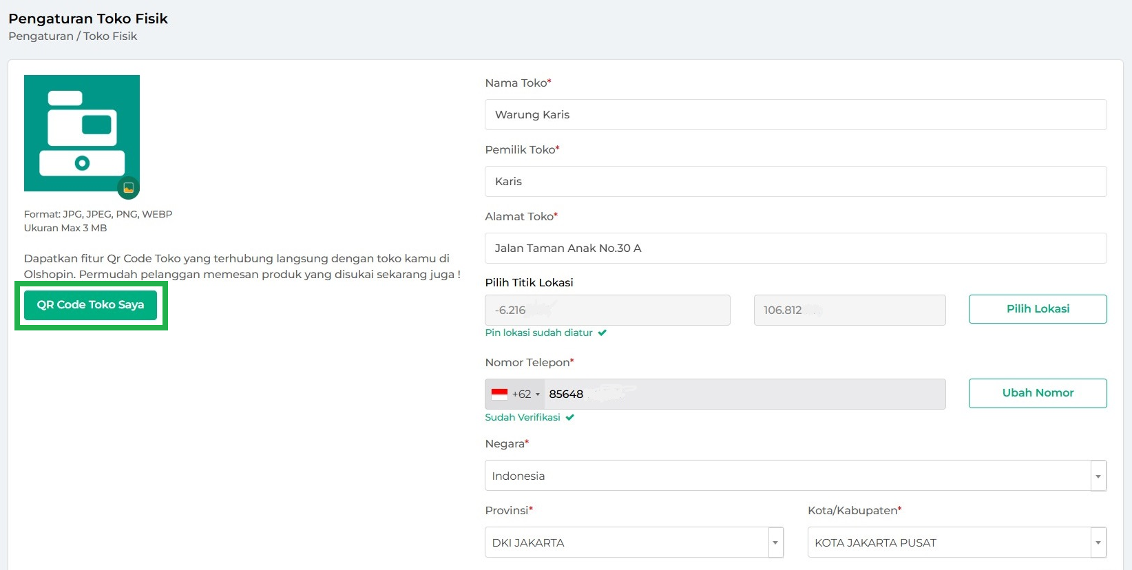 Anda dapat klik QR Code Toko Saya untuk diarahan ke halaman download QR Code Toko.