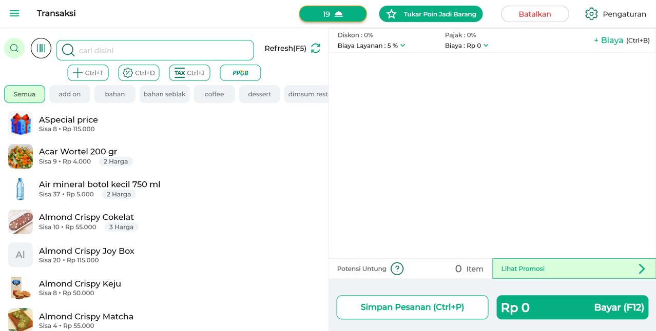 Berikut merupakan panduan terkait Cara Menambahkan Biaya Layanan ke Transaksi Penjualan yang diakses melalui aplikasi Kasir Pintar POS versi Desktop: