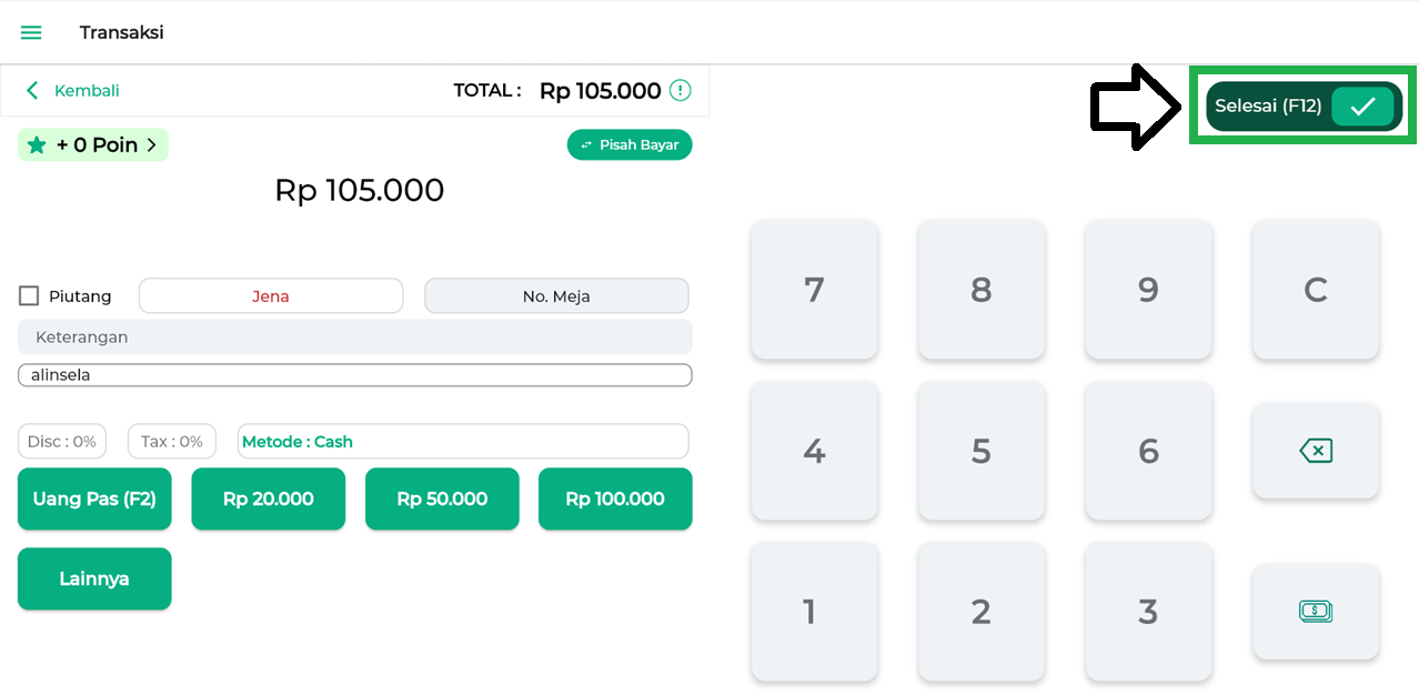 - Lalu, klik tombol Selesai/Centang untuk menyelesaikan transaksi.