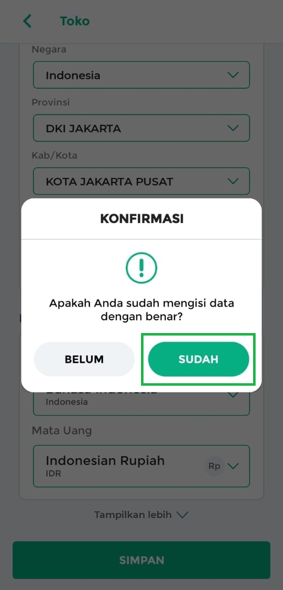Pilih SUDAH jika yakin. Jika sudah, selamat data toko Anda sudah diperbarui!