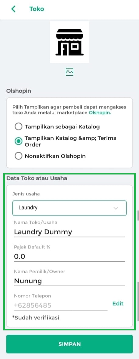 - Nama Toko/Usaha: Masukkan nama toko atau nama brand yang Anda gunakan untuk memasarkan produk/jasa (contoh: Laundry Dummy, Toko Sembako Jaya).