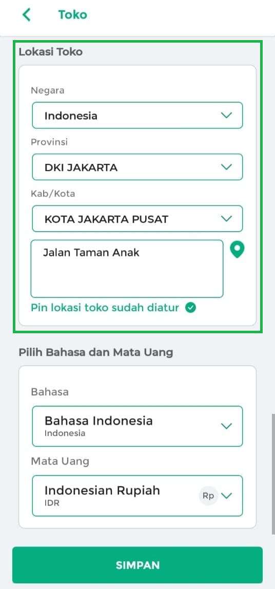 - Provinsi: Pilih provinsi sesuai lokasi toko.