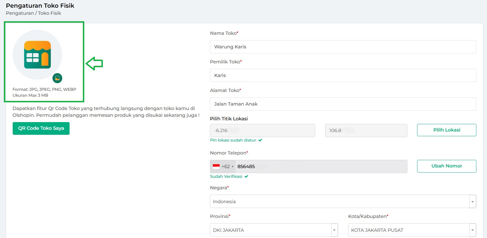 - Alamat Toko: Isi alamat lengkap toko Anda supaya pelanggan bisa lebih mudah menemukan lokasi (contoh: Jalan Taman Anak No.30 A).