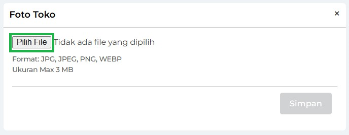 Pilih foto atau gambar untuk Toko Anda dengan klik Pilih File.
