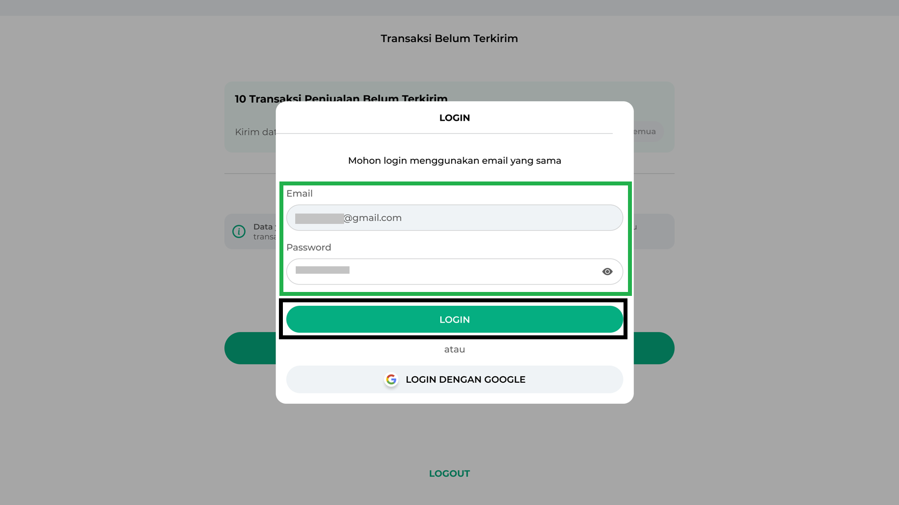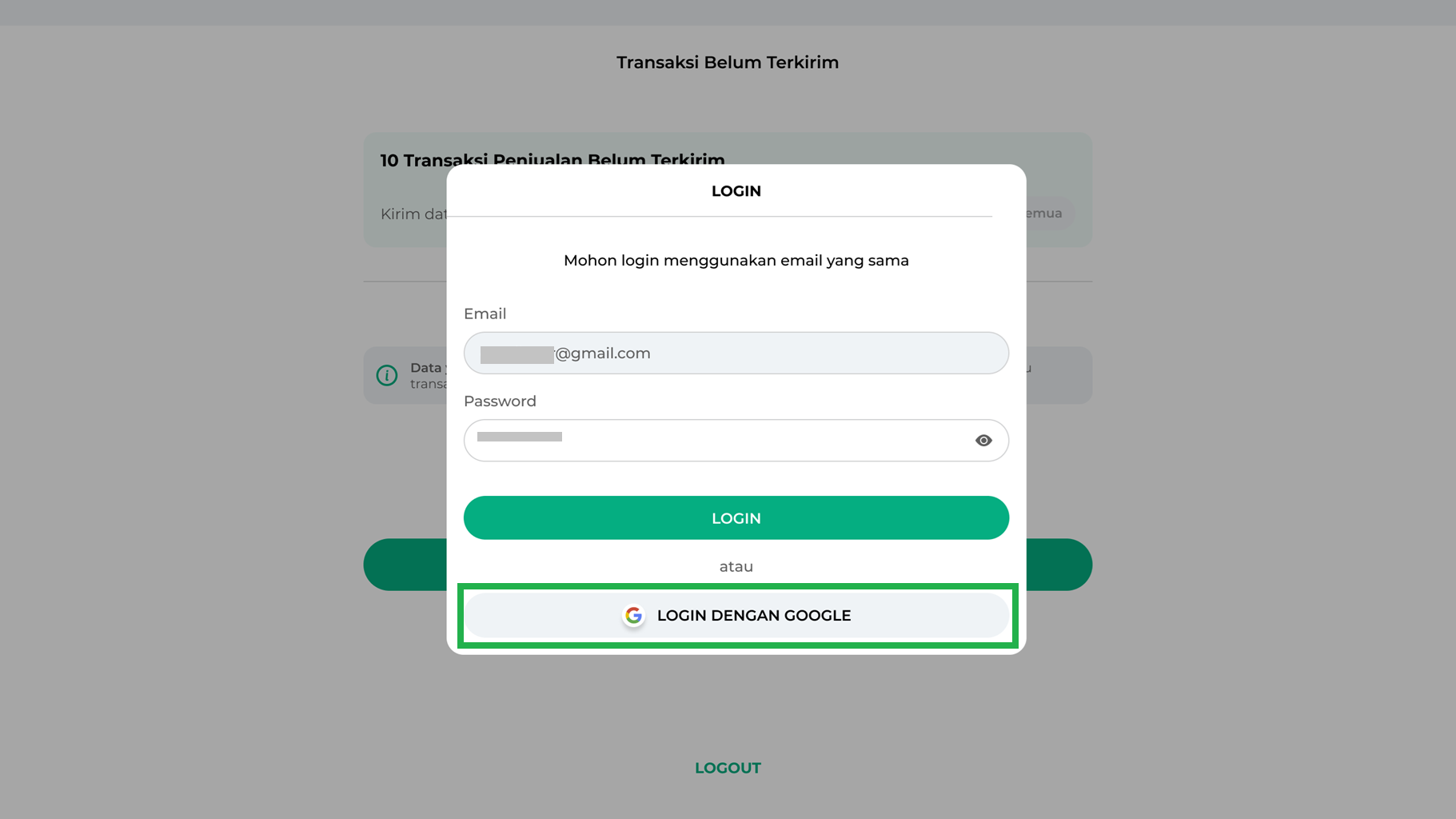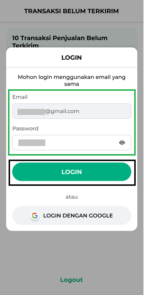 - Silakan login kembali dengan akun yang sama seperti sebelumnya untuk melanjutkan aktivitas transaksi penjualan seperti biasa.
