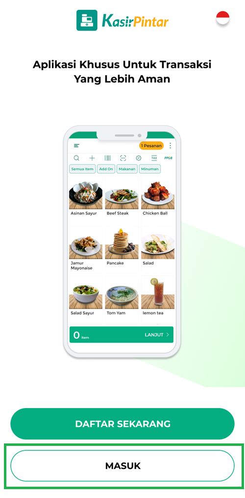 - Silakan login kembali dengan akun yang sama seperti sebelumnya, lalu klik tombol Masuk untuk melanjutkan aktivitas transaksi penjualan seperti biasa.
