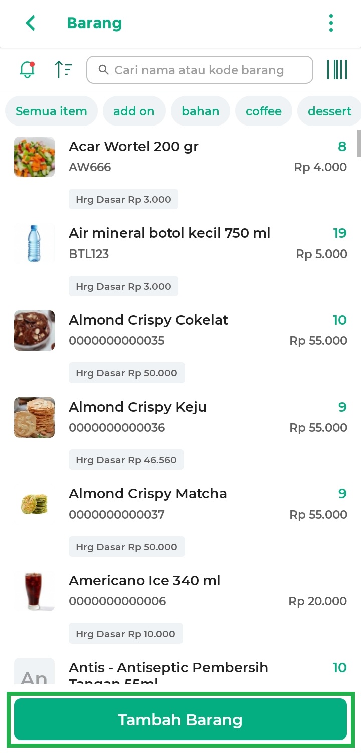 – Ketik nama barang pada kolom pencarian