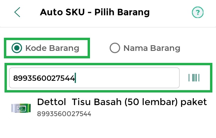– Klik opsi “Kode Barang”