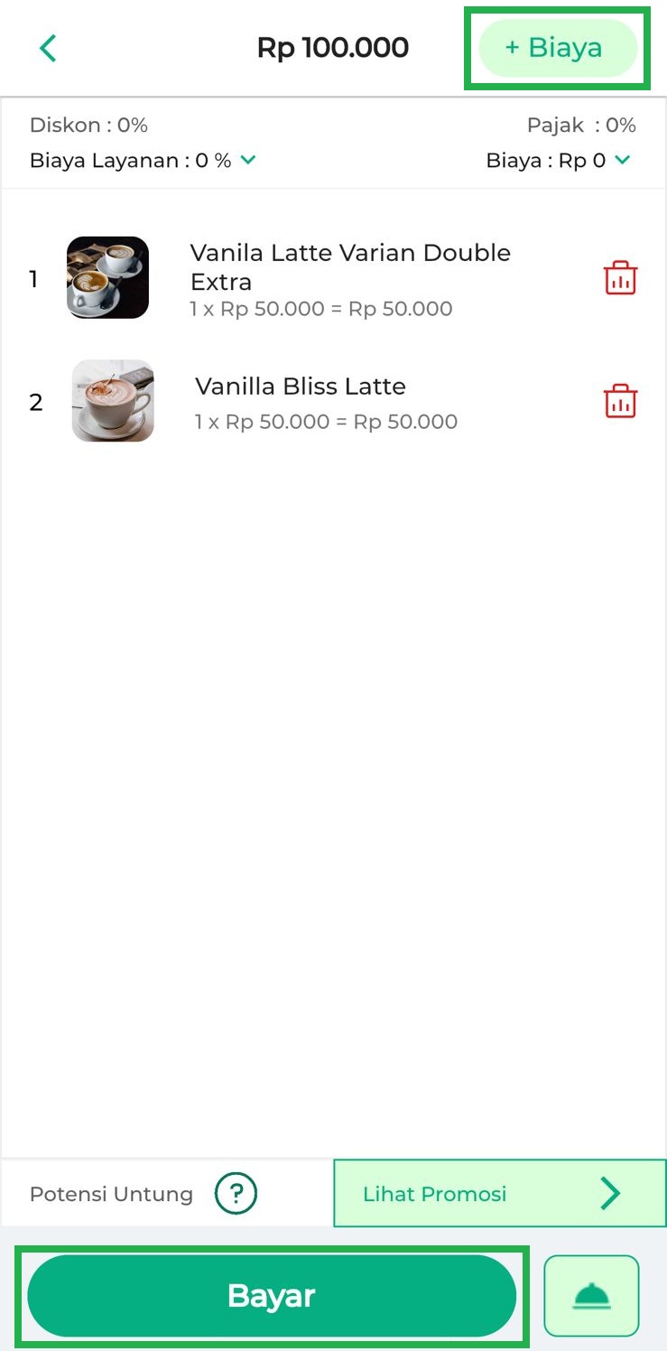 - Pada halaman ini, Anda bisa menambahkan Biaya Lain sesuai kebutuhan. Lalu, klik tombol Bayar.