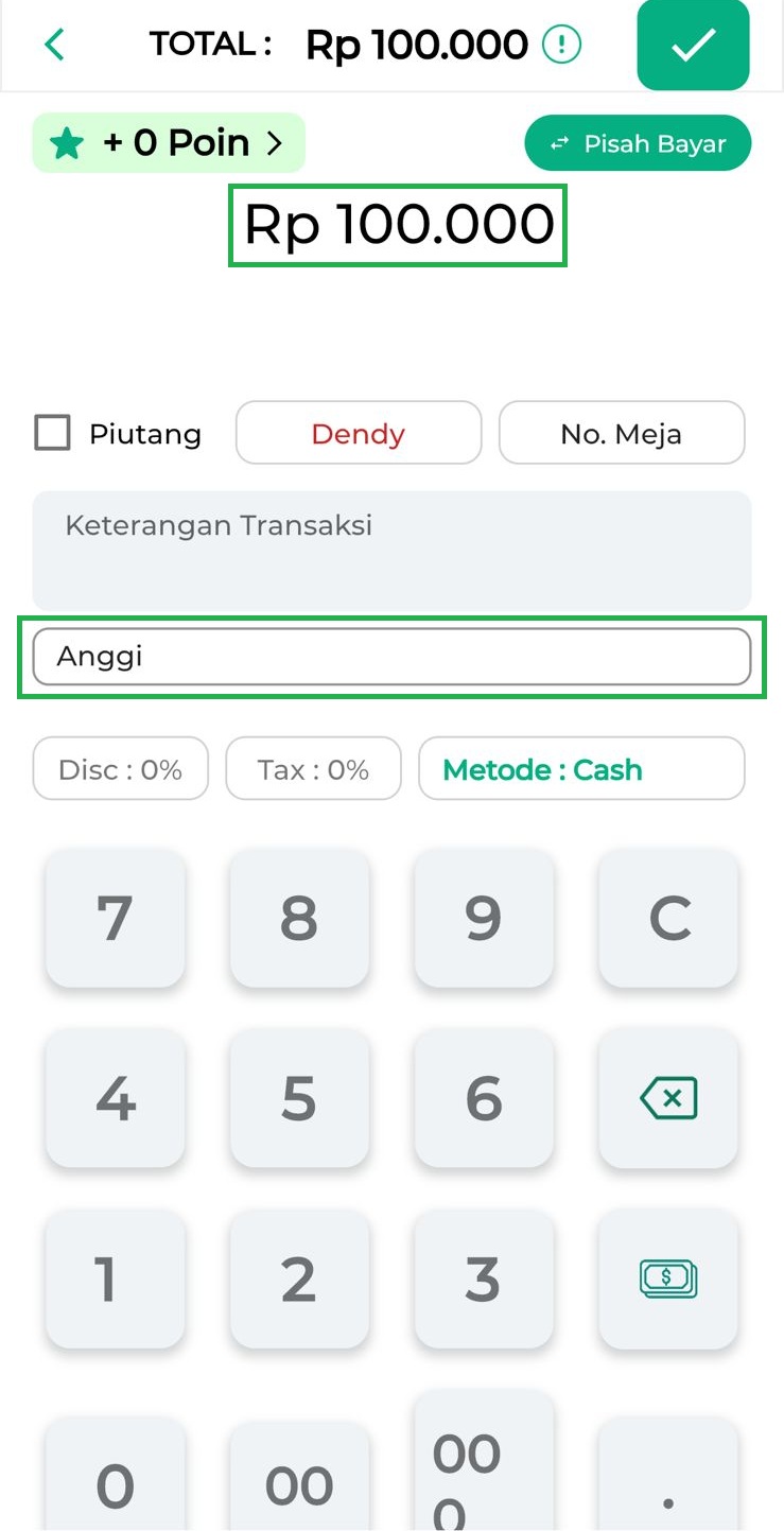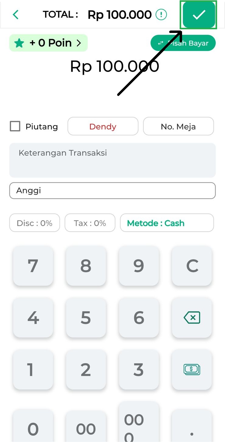 Lalu, klik ikon centang yang berada di sebelah pojok kanan atas untuk menyelesaikan transaksi penjualan.