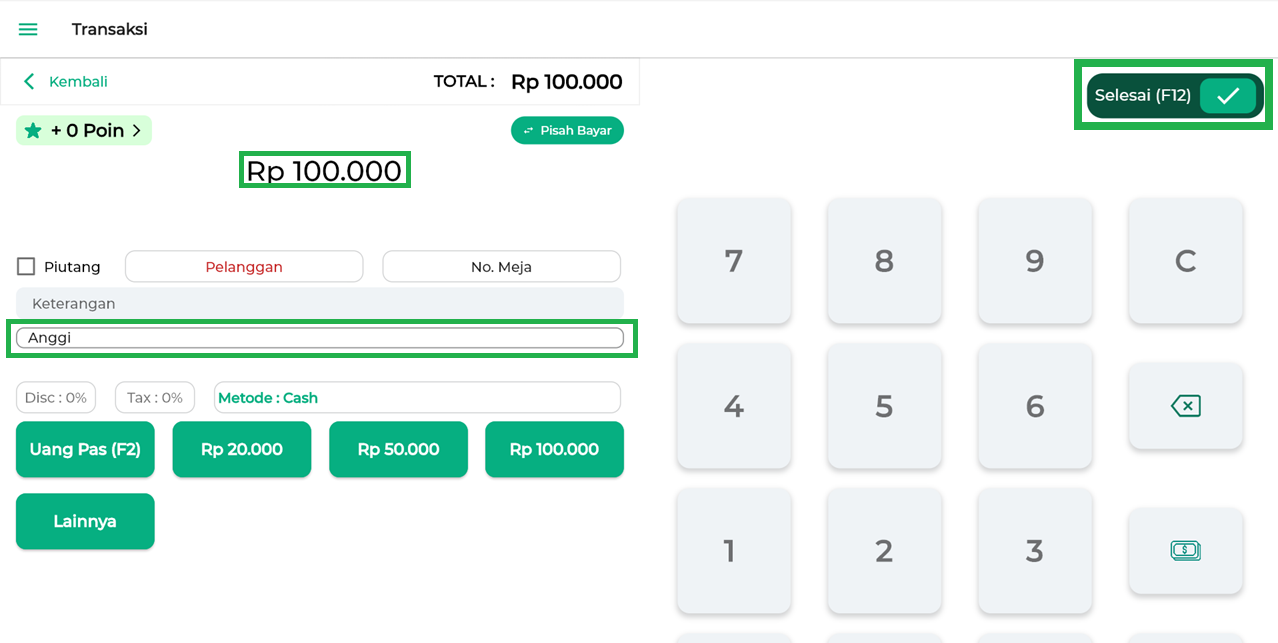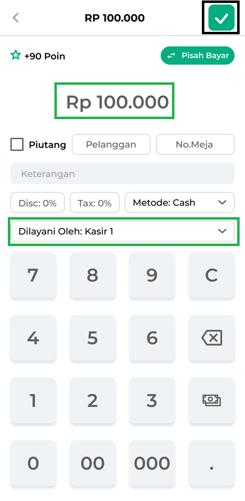 5. Klik ikon centang yang berada di sebelah pojok kanan atas untuk menyelesaikan transaksi penjualan.