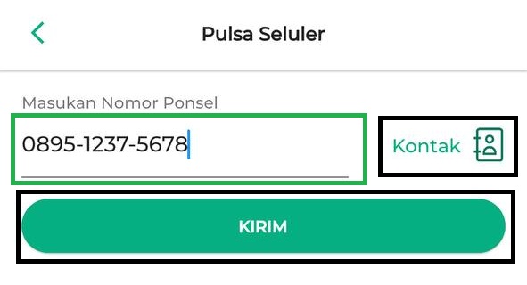 - Masukkan Nomor Ponsel yang akan dibayarkan tagihannya secara manual atau melalui daftar kontak yang ada di perangkat Anda. Lalu, klik Kirim.