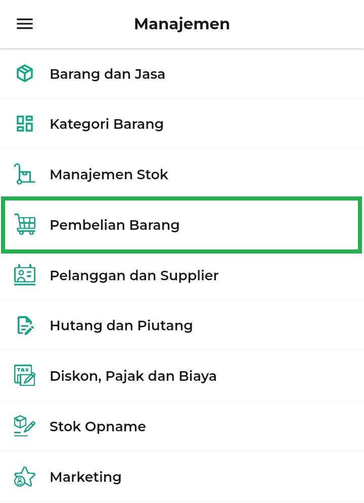 Berikut merupakan panduan untuk Cara Membuat Draft Pembelian yang diakses melalui aplikasi Kasir Pintar Dashboard versi iOS: