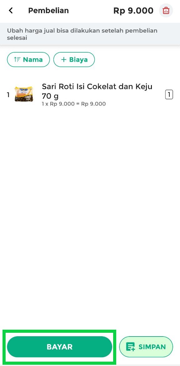 - Klik ikon centang untuk menyelesaikan transaksi.