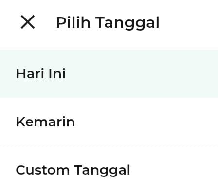- Custom: Memilih tanggal tertentu sesuai kebutuhan laporan.