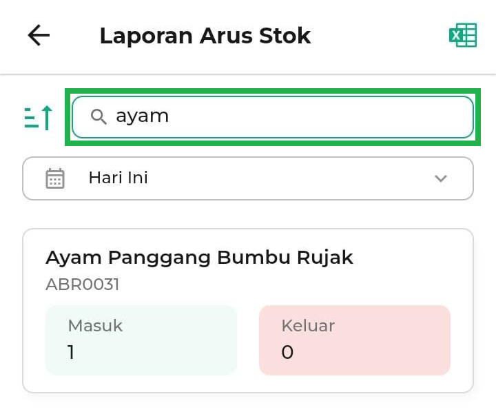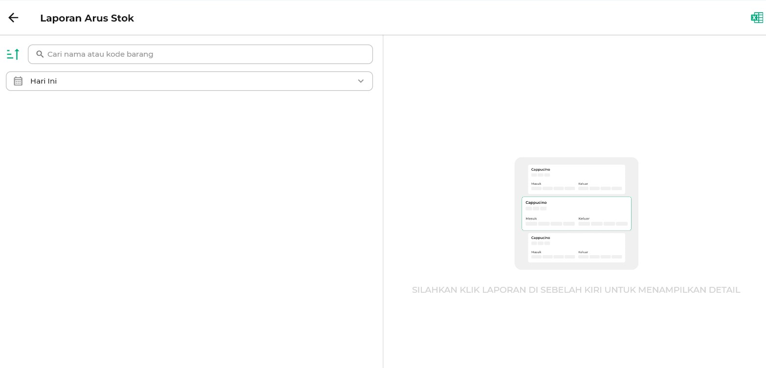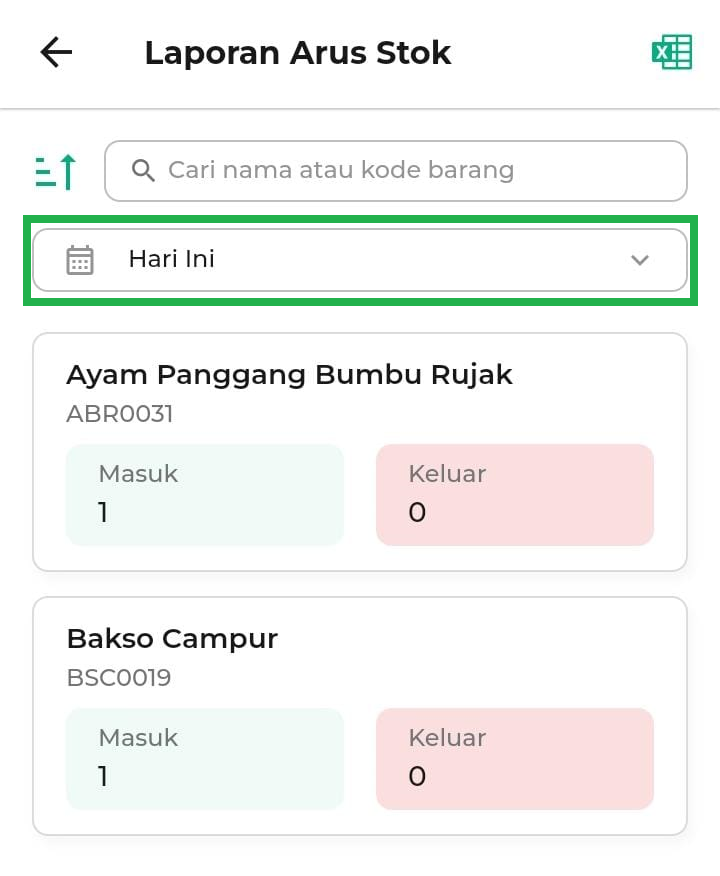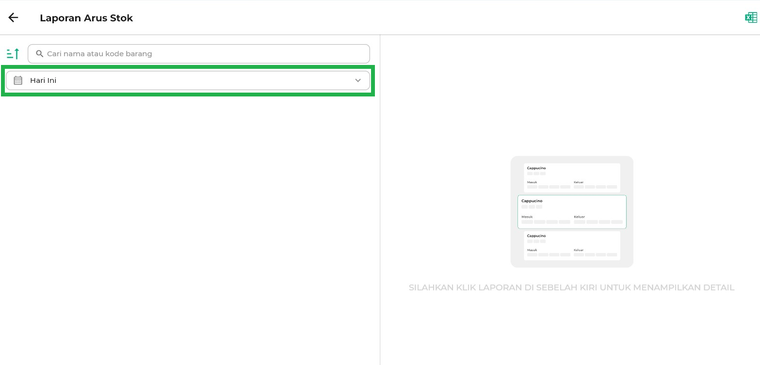 - Hari Ini: Melihat pergerakan stok di tanggal saat ini.