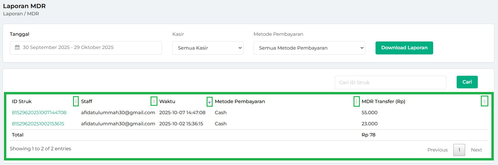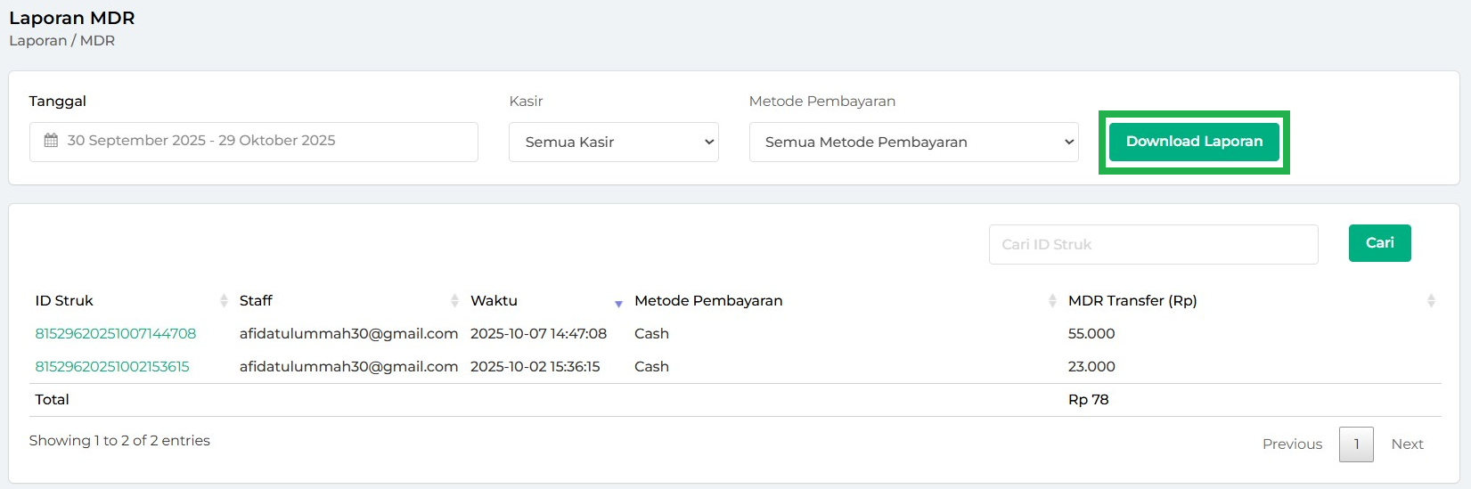 7. Klik tombol Download Laporan untuk mengunduh data laporan.