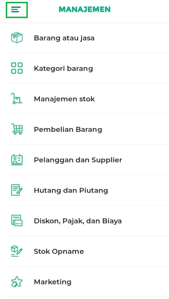 1. Buka aplikasi Kasir Pintar Pro atau Kasir Pintar Dashboard (iOS), lalu klik ikon garis tiga di pojok kiri atas untuk membuka menu sidebar.