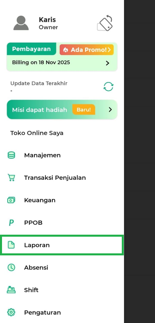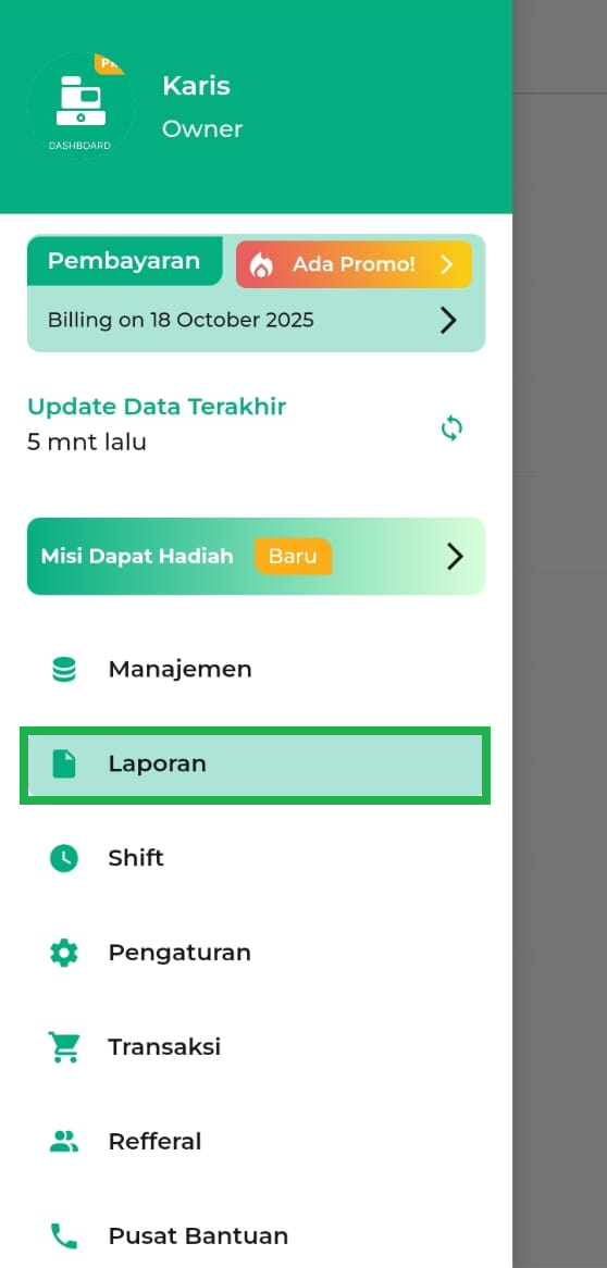 2. Pilih menu Laporan di sidebar.