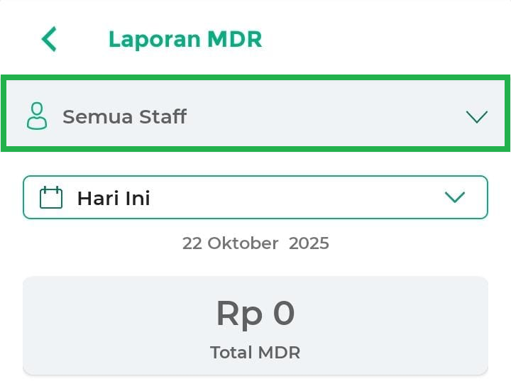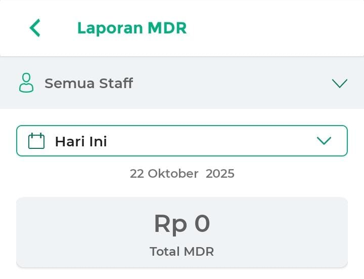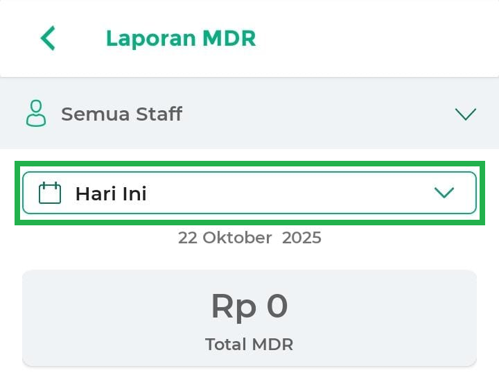 - Hari Ini: menampilkan laporan MDR hari ini.