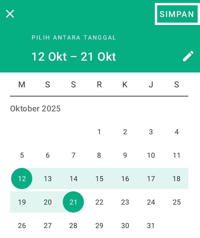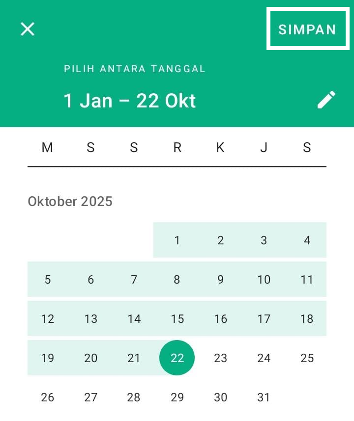 Jika Anda memilih Custom Tanggal, Anda dapat memilih jangka waktu periode berdasarkan keinginan Anda. Setelah itu klik Simpan.