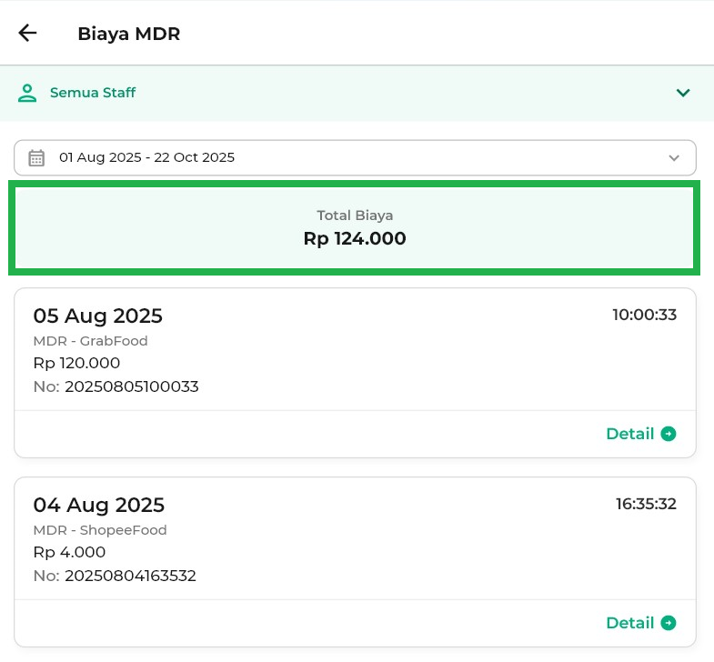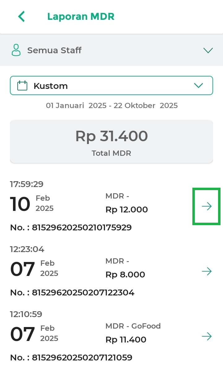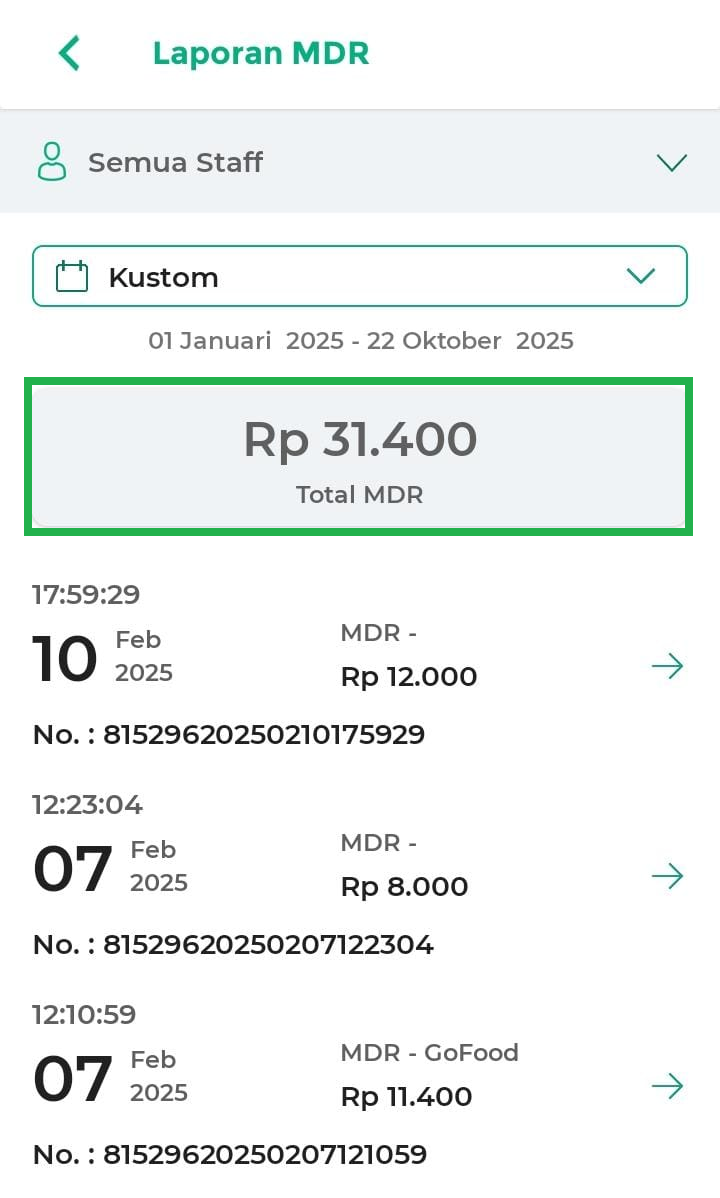 - Rincian: Melihat detail lengkap dari transaksi MDR.