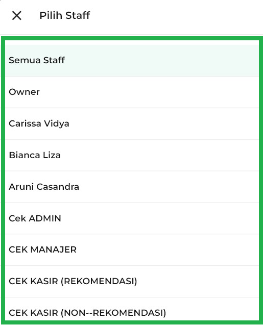 Anda dapat memilih salah satu dari daftar staff.