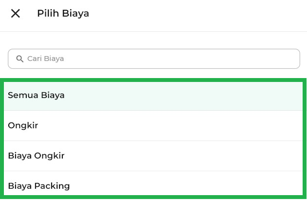 - Semua Biaya: Menampilkan seluruh data biaya penjualan.