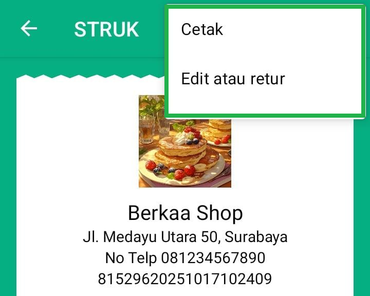 - Cetak: Mencetak struk jika perangkat Anda terhubung dengan printer.